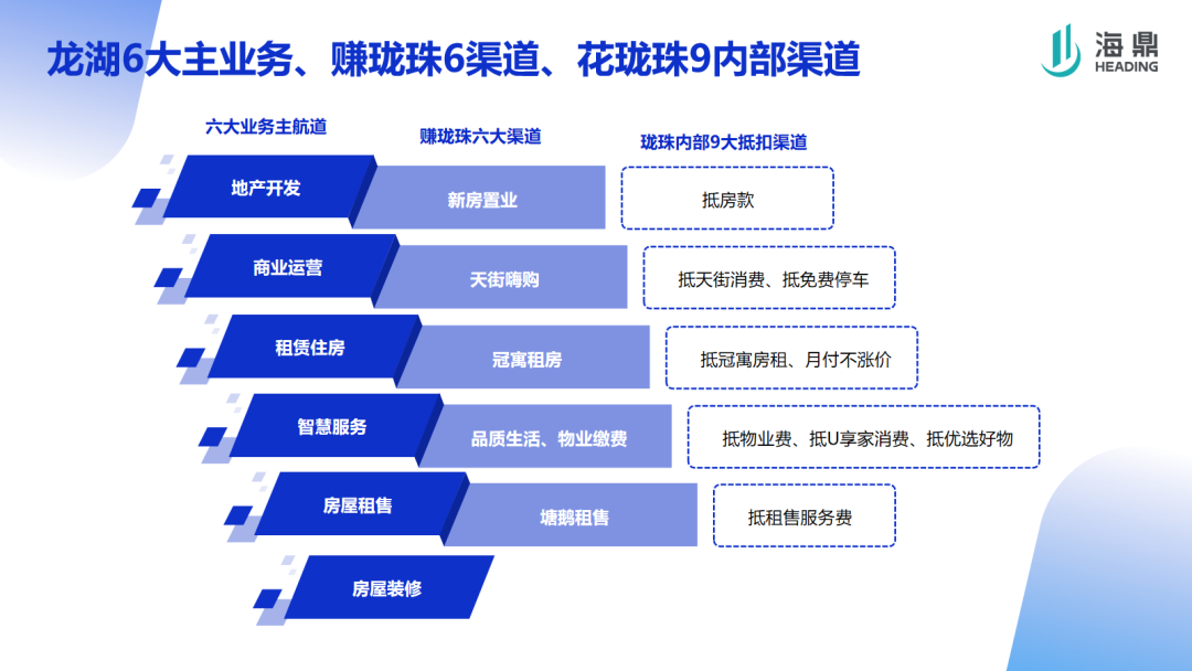 消費者賺取瓏珠,主要是可以通過六種途徑,比如在天街系列項目消費,在龍湖的線上渠道網(wǎng)購或是進(jìn)行不動產(chǎn)類業(yè)態(tài)進(jìn)行購買或租賃等等。那么同樣的,消費者在賺取瓏珠后,就可以使用這些龍珠去抵商場消費、抵房款、抵房租、抵物業(yè)費等等,其所謂的瓏珠內(nèi)部抵扣的9大渠道,都是龍湖6大主業(yè)務(wù)的關(guān)聯(lián)渠道。